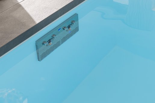 Die Wasseraufbereitung erfolgt durch die hochmoderne SSF Premium Filteranlage. Sie sorgt mit dem besonders effizienten AFM-Filtermaterial für sauberes, hautfreundliches Wasser und wird durch die SSF Premium Mess- und Regelanlagentechnik, die den pH-Wert und den freien Chlorgehalt automatisch überwacht, ergänzt. Ein Schwimmbad-Wärmetauscher gewährleistet konstant angenehme Wassertemperaturen und maximiert dabei die Energieeffizienz.